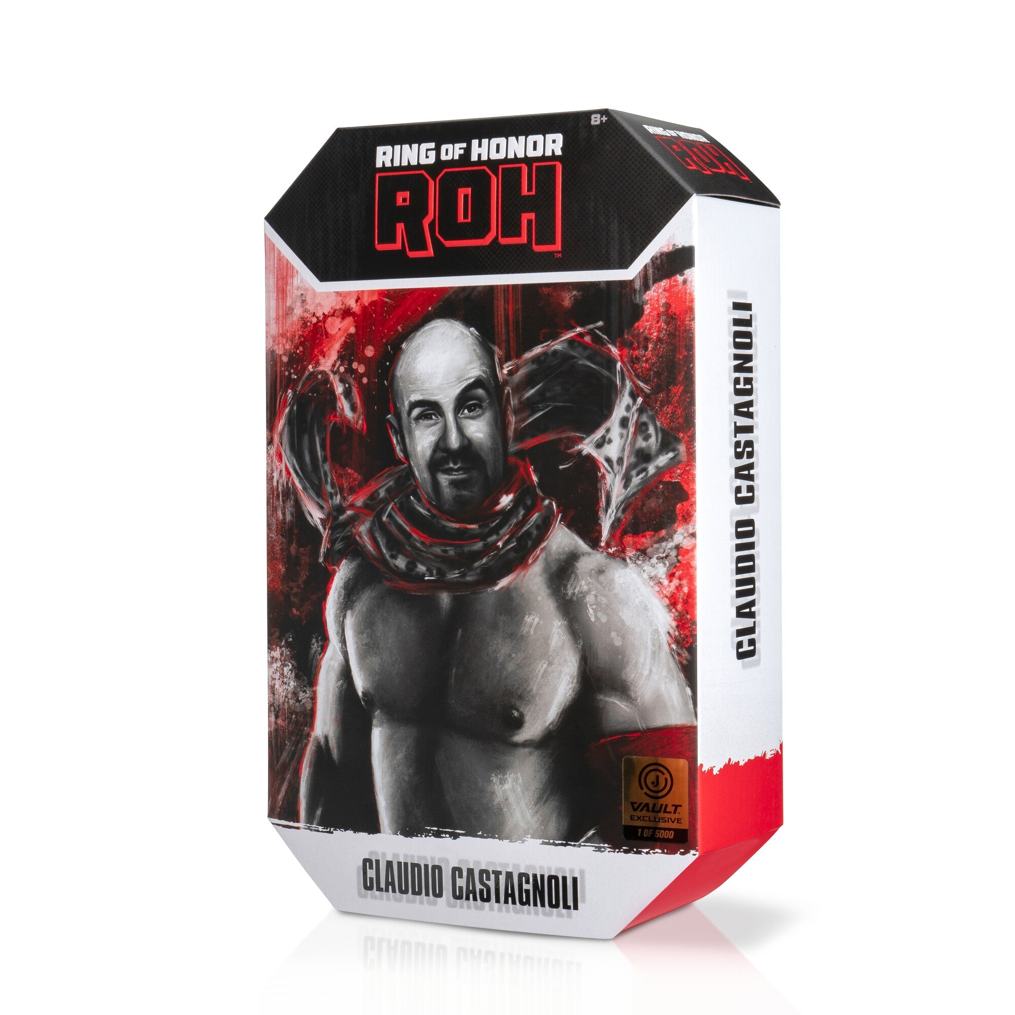 Uppercut the competition with Claudio Castagnoli Vault Exclusive. Featuring 25 points of articulation to land the Big Swing, this deluxe 6-inch action figure is inspired by Claudio's match gear from Ring of Honor 2008. Claudio enters the ring with an entrance robe, scarf, and ROH microphone, and comes equipped with an alternate and two alternate hands. ROH Vault Exclusive figures are highly posable and use advanced scanning technology to capture realistic details from each wrestler. Officially licensed ROH product by Jazwares. Ages 8+