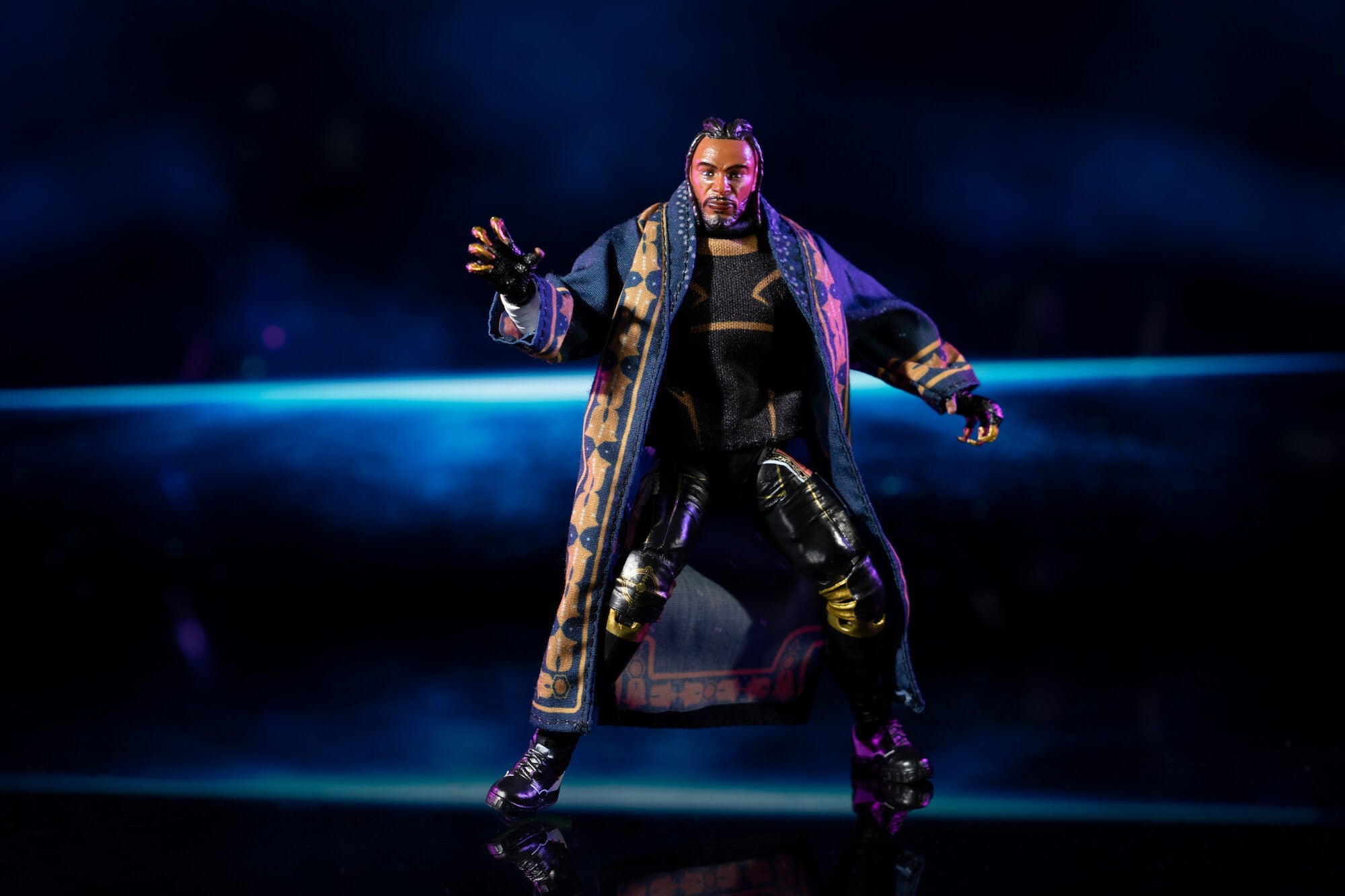 Swerve in a new era with the AEW Swerve Strickland (Vault Edition). This 6-inch figure of Swerve features 25 points of articulation and is inspired by his historic defeat of Samoa Joe at AEW Dynasty in April of 2024. He enters the ring with two pieces of soft entrance gear (top and robe) plus four swappable hands (fists and claw gloves). He also comes equipped with an alternate mask head to recreate every moment from the match. The entire set is encased in premium packaging that comes with a special slipcase cover. AEW Vault figures are highly posable and use advanced scanning technology to capture realistic details from each wrestler. AEW Swerve Strickland (Vault Edition) is only available at Jazwares Vault. Officially licensed AEW product by Jazwares. Ages 8+